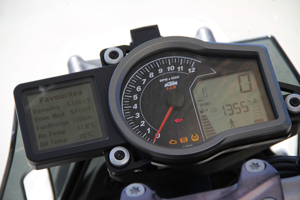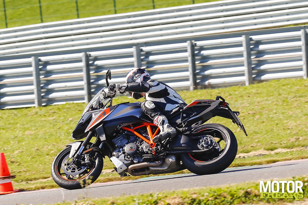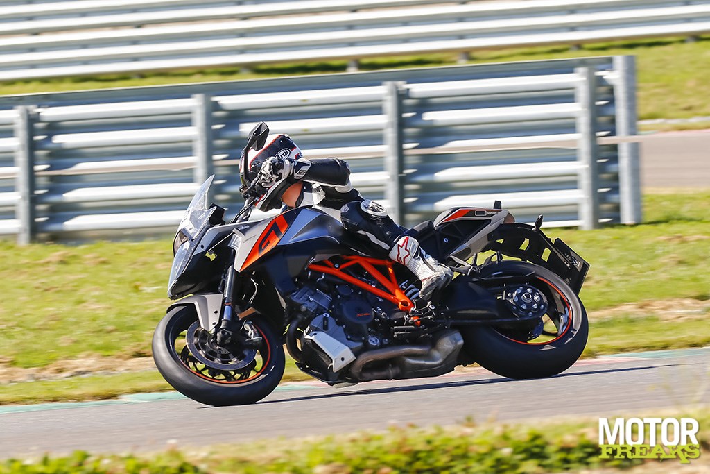Op het circuit hebben wij echter ervaren dat de motor nog heel erg beweeglijk en gevoelig is voor input van buitenaf; een keer met je ogen knipperen en het rijwielgedeelte wordt onrustig. Dat is wel best vervelend, want dat doet wel afbreuk aan het solide vertrouwen dat de Super Duke ons tot dat moment gaf. En dan heb je met een keus uit vier programma’s niet veel opties.