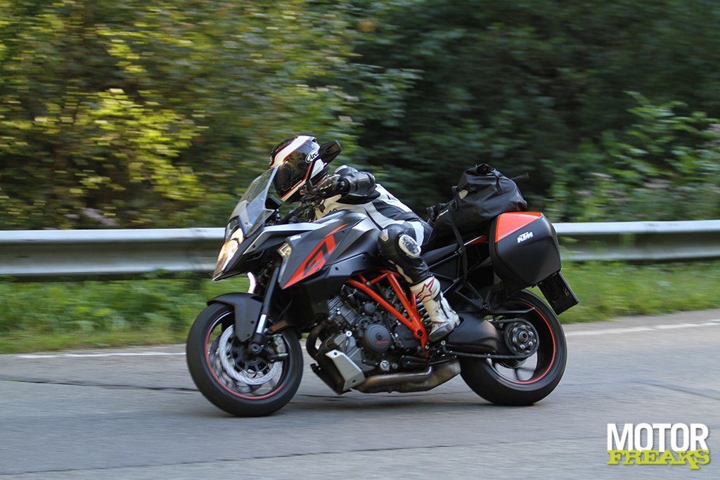 Geen van deze motoren is absoluut perfect en haalt honderd procent score, maar ze komen er stuk voor stuk wel aardig dichtbij. Wil je een pak kilometers wegwerken, dan kun je dat op elk van deze machines, net als stevig sturen, heel lang zitten (uithoudingsvermogen is ook een kwaliteit) en als het er op aan komt records breken. De Yamaha is een waanzinnig ding, maar is dorstig en heeft niet de scherpste remmen van het stel. Bovendien zijn alle ‘touring’ delen duidelijk accessoires en minder mooi geïntegreerd als die van de anderen. Aan de andere kant heeft ook BMW een extra rek nodig om de drie koffers op te kunnen monteren, maar dat zij ze vergeven omdat ze het wel kúnnen en we stiekem verwachten dat dit een groeiende trend is die bij een volgend model ook toegepast zal worden. Dat de koffers wel veel meer van invloed zijn op het weggedrag is dan weer wel een klein puntje. We hebben er niet eens echt veel last van gehad, maar het is wel te merken; je wéét dat je met koffers rijdt, ook al kijk je niet naar achter. Dat lukt je bij de KTM niet, diens koffers zijn zo in het geheel opgenomen dat je in een oogwenk vergeet dat je ze mee hebt. Daarbij is het neusje van de GT zo ontworpen dat ook dat niet stoort en perfect in het design past, waarbij ook de 35-liter tank in is geïntegreerd. En daarmee scoort de 1290 Super Duke wel veel punten, evenals het compleet geïntegreerde elektronicasysteem dat alles wat er gebeurt in de gaten houdt terwijl jij je nog steeds op een gewone Super Duke waant. Zoals we ‘m een jaar geleden al reden en een jaar daarvoor nog eens. Op de weg is de GT nog steeds gewoon de Super Duke zoals je ‘m kent, ‘maar dan met koffers en een ruitje’. En dát is nou precies wat we zochten.