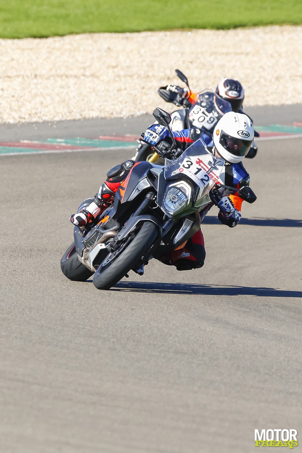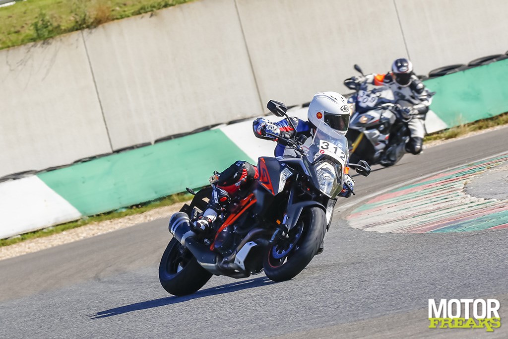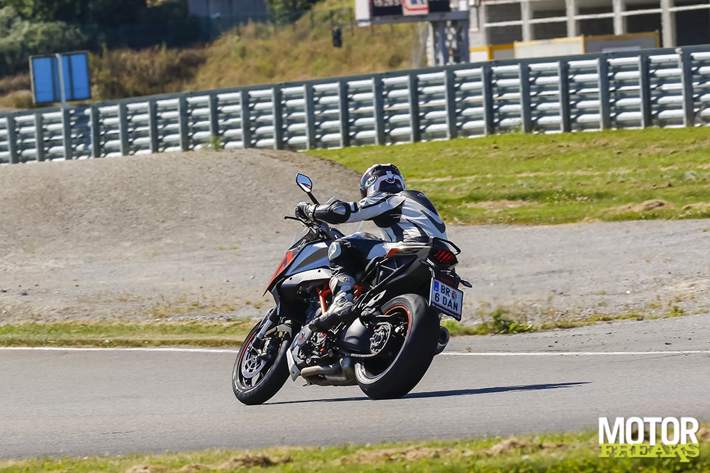 Om te beginnen dus dat geluid, wat zoals de meting al zegt gewoon teveel is. Zou je niet zeggen, totdat je langs de pitmuur gaat staan en iemand een 1290 Super Duke GT volgas het rechte stuk op blaast. Onder volle belasting moeten die 180 pk’s er flink aan trekken en dat hoor je.