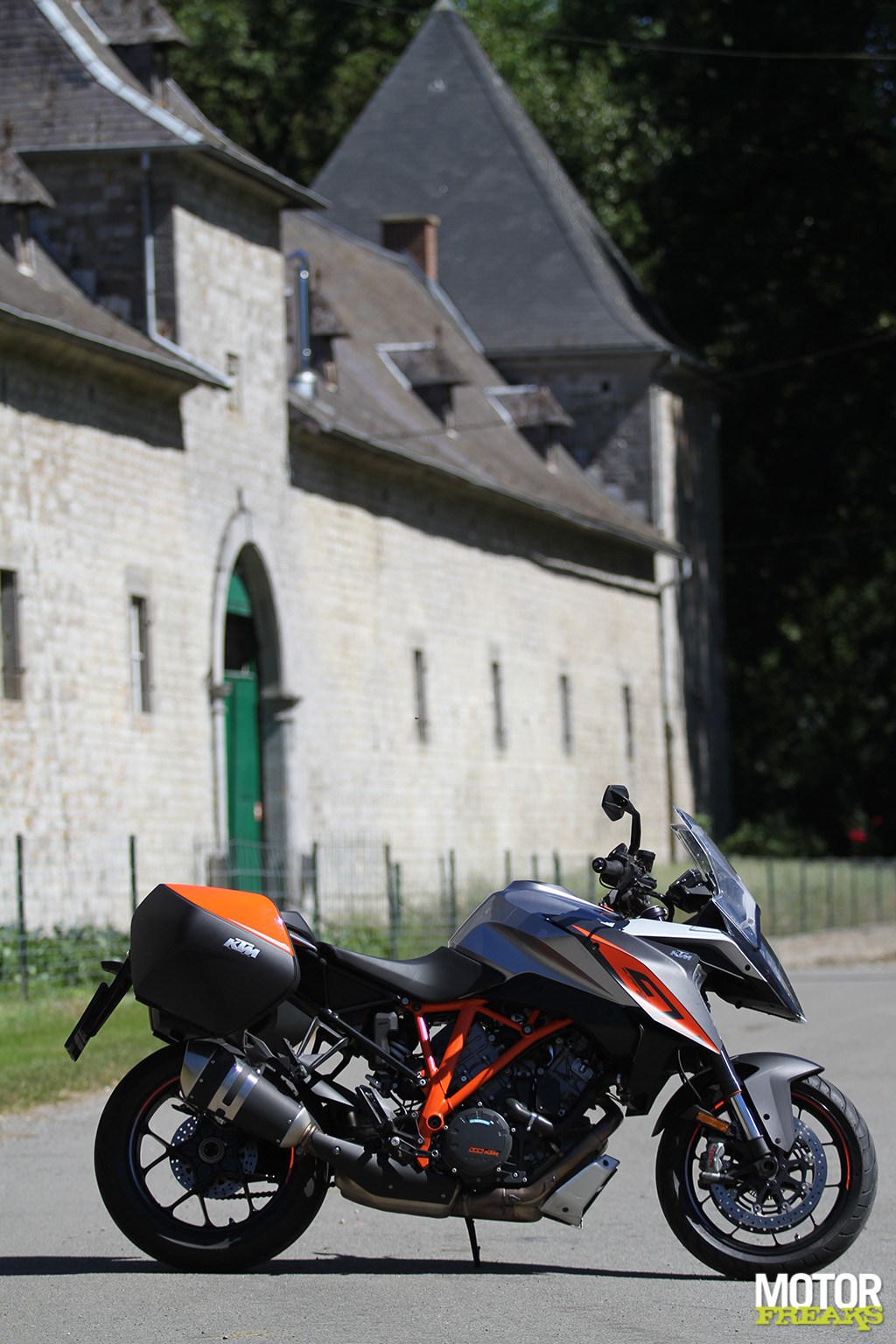 Eigenlijk hadden we naar Saint Tropez moeten gaan, maar ja...dáár ligt weer geen circuit om de hoekinclusief de elektronisch instelbare vering en de twee-richtingen quickshifter. De KTM daarentegen is het Oostenrijkse antwoord hierop. Of de nog luxere versie van de standaard 1290 Super Duke. Vergelijkbaar met het verschil tussen Adventure en Super Adventure op meer dan één manier. Was de Super Duke zelf al een klein kanon, daar doet de GT nog even een schepje bovenop: volledig geïntegreerd, bochten-ABS en Tractie controle, elektronisch instelbare vering en demping, een ruit vooraan en onzichtbaar bevestigde koffers achter. Plus uiteraard nog een lading luxe en gimmicks, die de motor nog breder inzetbaar maken. Geen tweerichtings quickshifter, maar dat is in dit geval dan ook nauwelijks nog nodig. BMW was eerder en dus is dit het KTM antwoord, maar als het andersom was geweest was het echt een loodzware dobber geworden voor de concurrent.