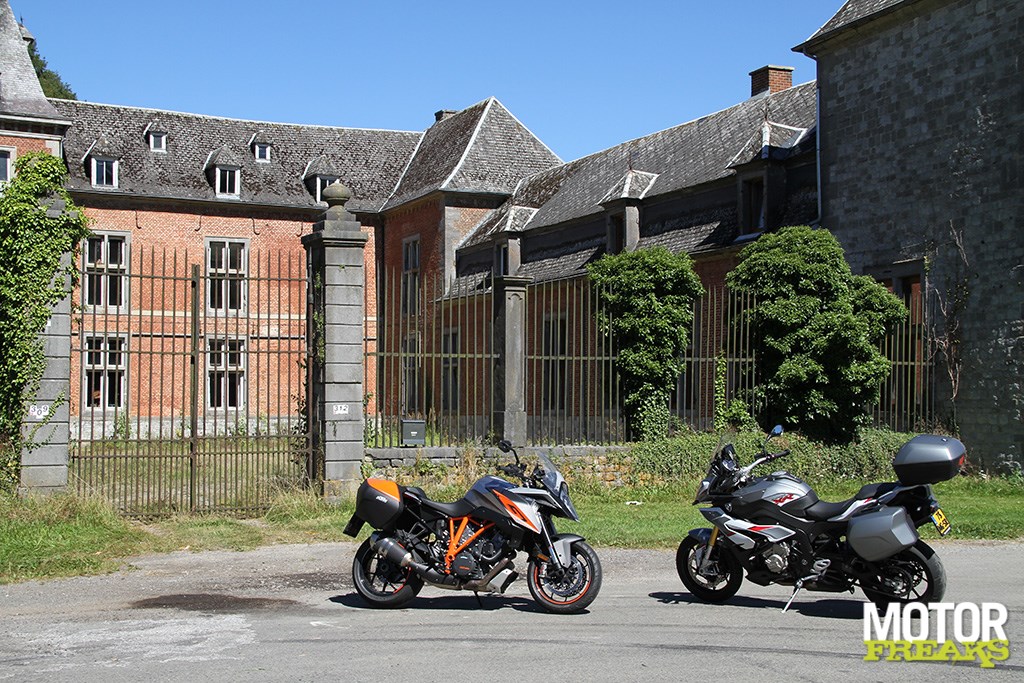 Jippie... we zijn er weer, bij de bocht der bochten, de Belgische variant op de échte CorkscrewBeide machines zitten als een koning en brengen ons desgewenst nog naar Kreta als we het zouden verlangen. Maar dat is gelukkig alleen maar de eerste indruk. En natuurlijk zijn er wel verschillen, maar die zijn nauwelijks verrassend te noemen. Als je heel goed oplet merk je met de BMW wel een klein beetje dat je met bagage rondrijdt, maar kijk naar de foto’s: je ziet dat er nogal wat aan het subframe hangt. Alles dik binnen de lijntjes en geen reden tot ongerustheid. Zelfs fileverkeer is geen enkel probleem, dus aan breedte ook geen enkel overschot. Dat je dat verschil merkt is dus niet vreemd, ook omdat BMW zich nog wel bedient van een los framewerk en KTM het nou eenmaal iets strakker heeft kunnen maken. Aan de andere kant is de KTM ook nieuwer en heeft men de truc af kunnen kijken. Van bijvoorbeeld motoren als de GS, om maar wat te noemen…. Maar goed, kniesoor dus.
