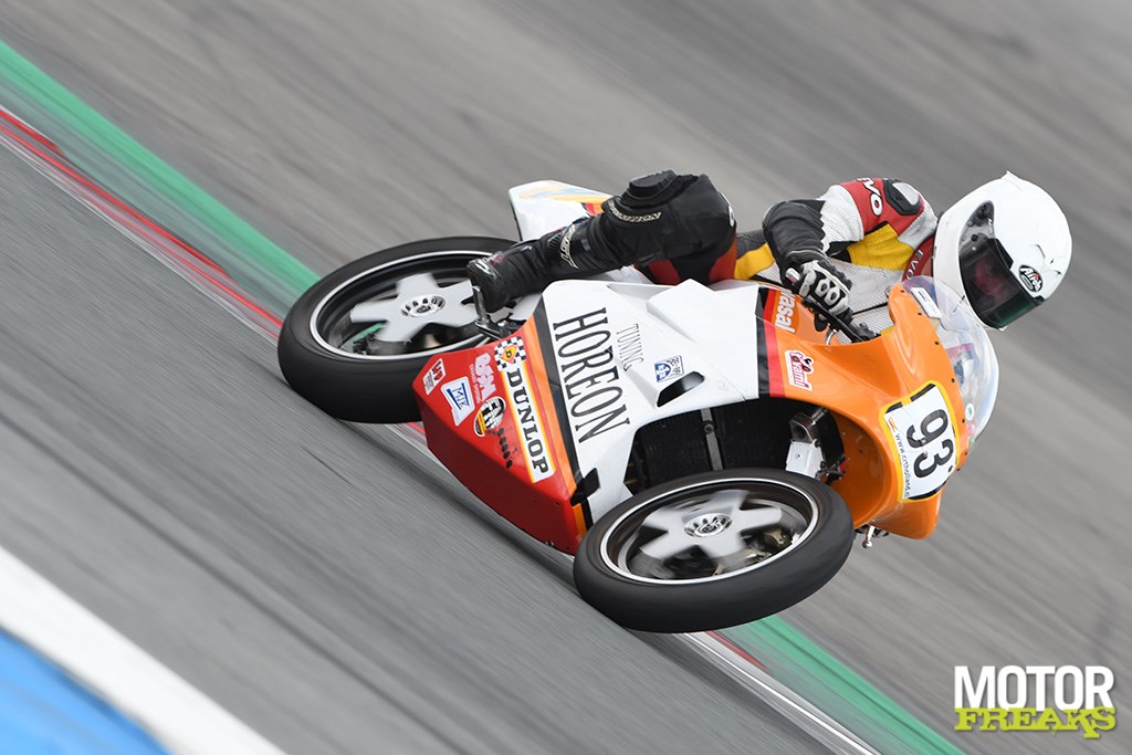 Altijd al een waaierfoto gewild...verzorgde vrij rijden en/of trainingsdagen en of dat op zich al niet genoeg is biedt CRT Holland ook nog eens een aantal themadagen aan, zoals bijvoorbeeld de Pirelli dag, Yamaha en Ducati only dagen en zelfs een speciale classic 2-takt dag. Op 9 augustus stond er dus opnieuw zo’n speciale CRT dag op de agenda op het uitdagende TT circuit speciaal voor classic motoren tot bouwjaar 1999.