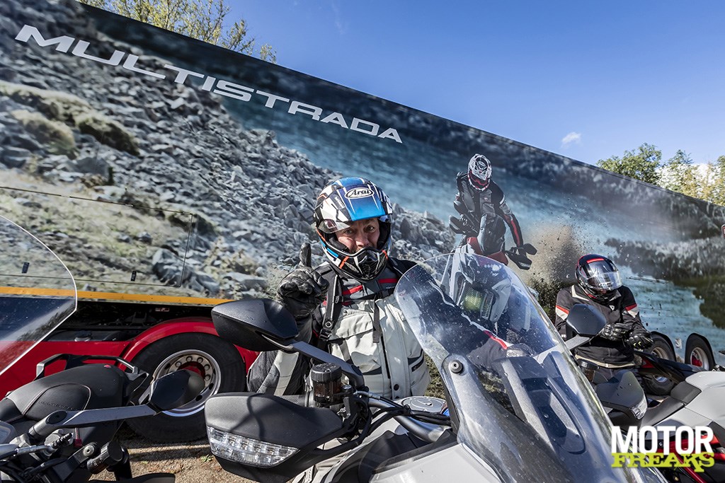 Hij kan mooi lullen, die Beppe, maar ik heb zo m'n twijfels. Maar goed, ik laat me graag overtuigenterrein-angst te overwinnen en met een Multistrada 1260 Enduro te genieten van bos- en rotspaden, zodat je het echte avontuur kunt beleven.