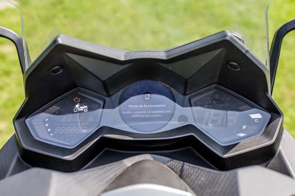 Als de TMAX een R1 is, dan is dit zeker een H2?dashboard dat uit de hoogtijdagen van Knight Rider dateert en in het zonlicht amper afleesbaar is. Nu zijn twee van die klachten volgens de Nederlandse importeur inmiddels al door Kymco aangepast: een verbeterde bediening van het contactslot en een aangepaste (lees: versterkte) lichtsensor van het display, waarmee het probleem van afleesbaarheid zou opgelost zijn.