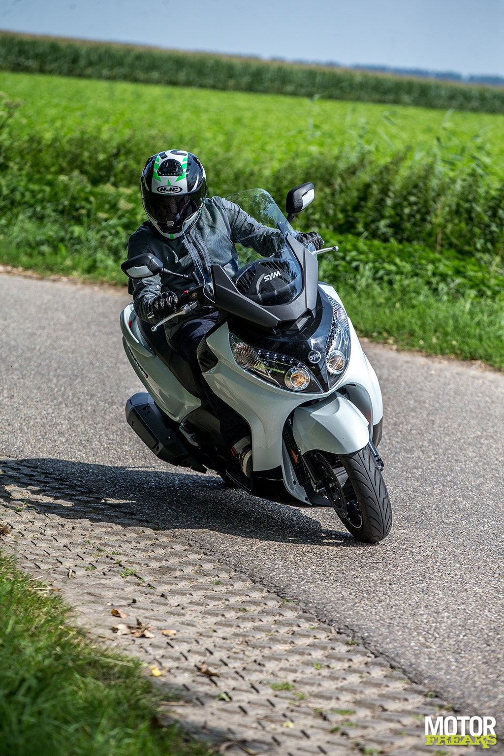 en ook de lekker korte draaicirkel zorgen voor extra punten. In het geheel dus geen verrassingen en ook op de snelweg staat de SYM zijn mannetje.