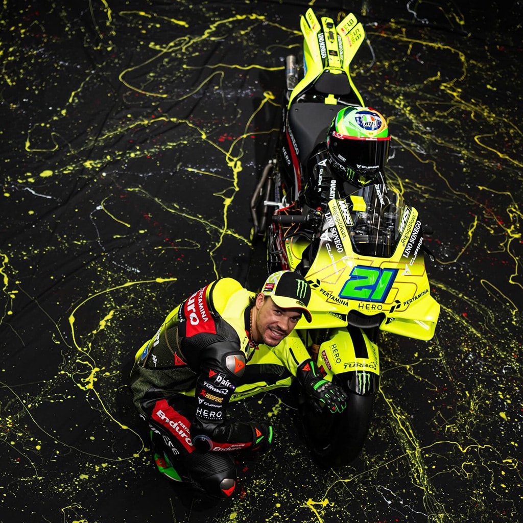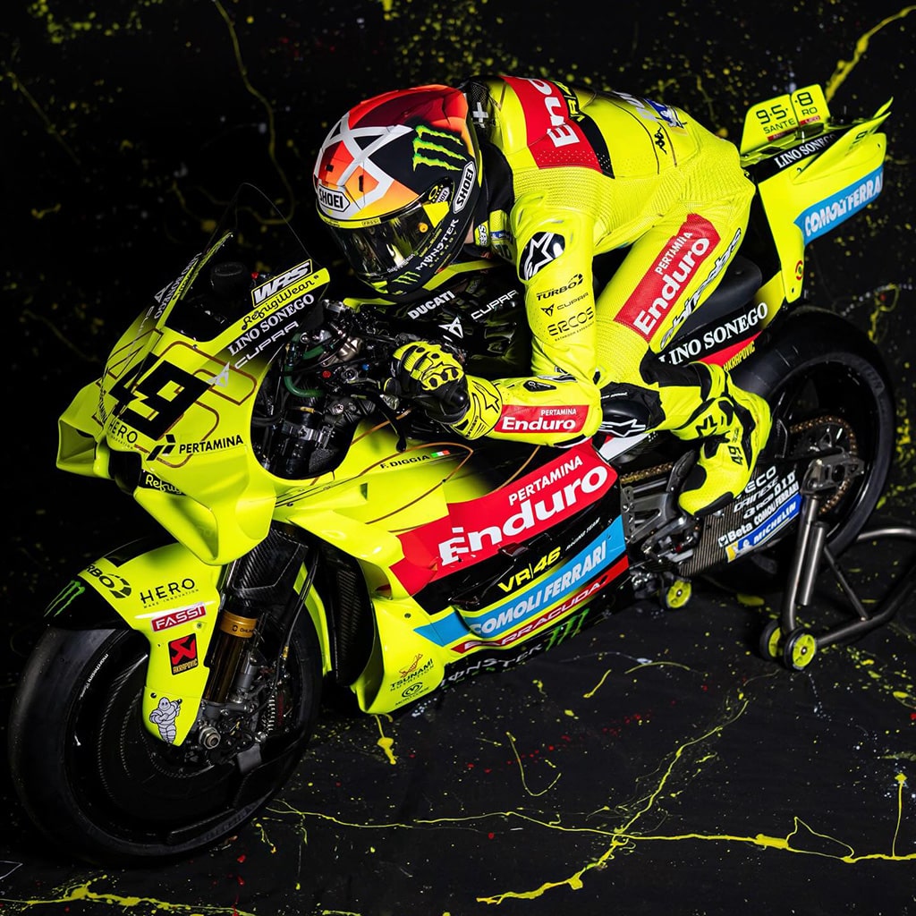 Net als vorig jaar zet VR46 in 2026 twee verschillende Ducati-specificaties in. Fabio di Giannantonio rijdt met de volledige fabrieksmotor, de Desmosedici GP26, terwijl Franco Morbidelli uitkomt op de GP25, het model waarmee Marc Márquez in 2025 wereldkampioen werd bij het fabrieksteam van Ducati.