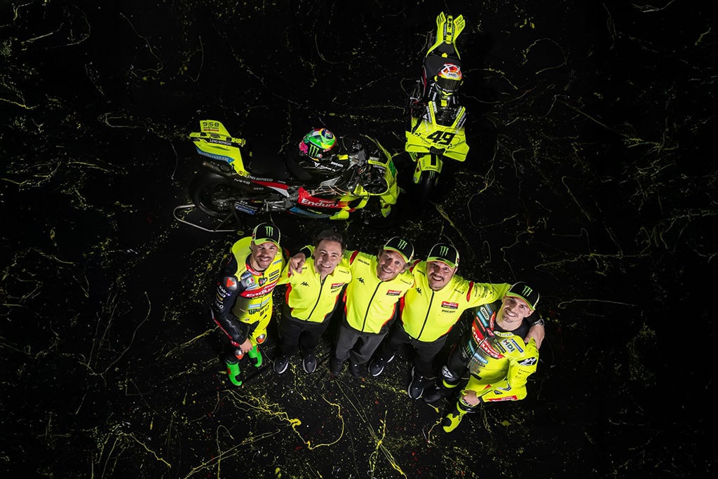 Waar VR46 de afgelopen seizoenen koos voor een combinatie van geel en wit, maakt dat wit nu plaats voor zwart. Het team omschrijft de nieuwe stijl als “Black and Light”. Ook de racepakken zijn vernieuwd en hebben nu een tweekleurig ontwerp in geel en zwart.