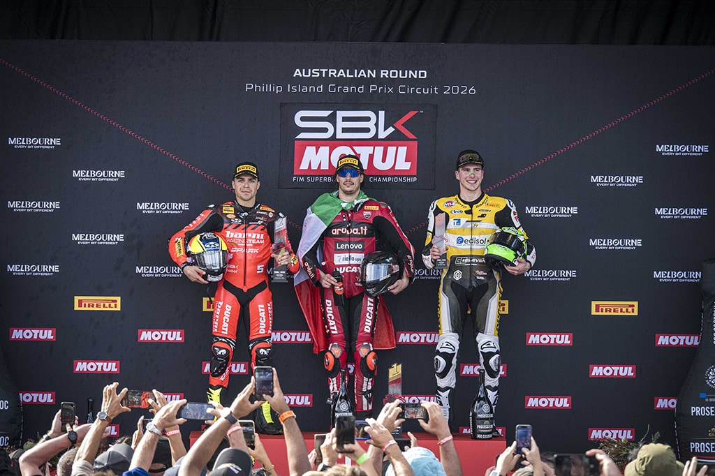 Na trainingen, poleposition en nu ook de overwinning is het duidelijk: Ducati begint 2026 met een stevige greep op het kampioenschap. Het was de 5e zege voor Bulega in Australië en de 450e zege voor Ducati in het WorldSBK. Bulega oogt ontspannen, snel en foutloos – een combinatie die gevaarlijk kan worden voor de concurrentie.