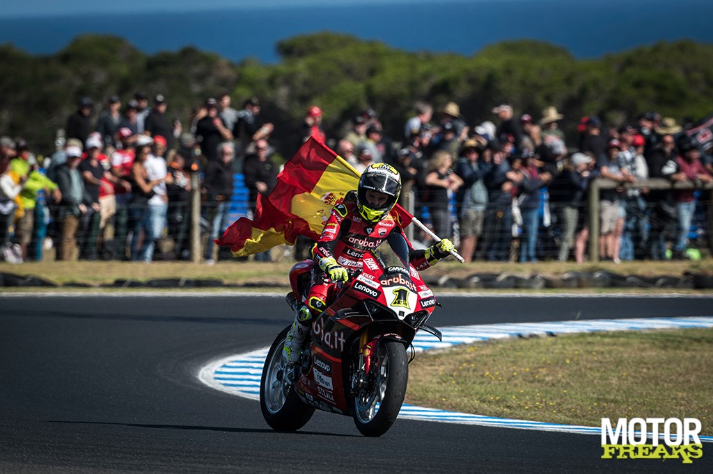 Drama te over in race 2 van het WorldSBK op het circuit van Phillip Island. Vanaf de pole position had Bautista weliswaar meteen de leiding genomen in de race, schreef daarna onbedreigd zijn 35e WorldSBK overwinning bij, zijn vijfde zege op rij en zijn achtste overwinning op dit circuit, waarmee hij de meest succesvolle coureur van Phillip Island is.