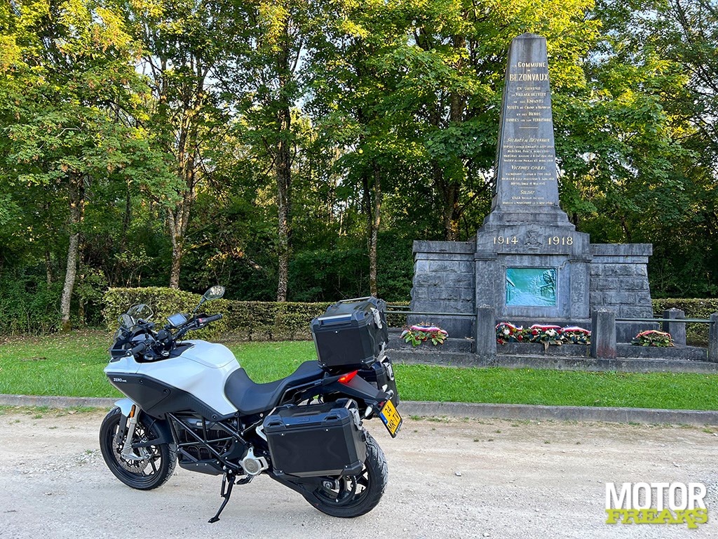 Twee jaar geleden was Verdun het einddoel van ons elektrisch avontuur, destijds met de Zero SR/S, nu zijn we nog maar net iets verder dan een kwart waar ik een half uur later na 189 kilometer de Zero met nog 12% lading aan de paal zet en bij een bakker om de hoek voor een heerlijk vers gemaakte baguette ga, om een uur en tien minuten later met weer met volle maag en 88% prik mijn weg te vervolgen.