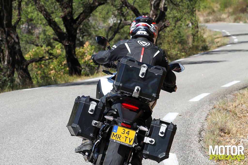 Wat rijden betreft waren we zeer in onze nopjes met de DSR/X, een echte Grand-Tourist die lange afstanden en rijden in de bergen op het lijf geschreven is (in een uitgebreide nog te publiceren test zal daar diep op in worden gegaan), en ook het laden op zich hebben we niet als een probleem ervaren. Op de laatste nachtelijke sessies na hebben we telkens het nuttige met het aangename