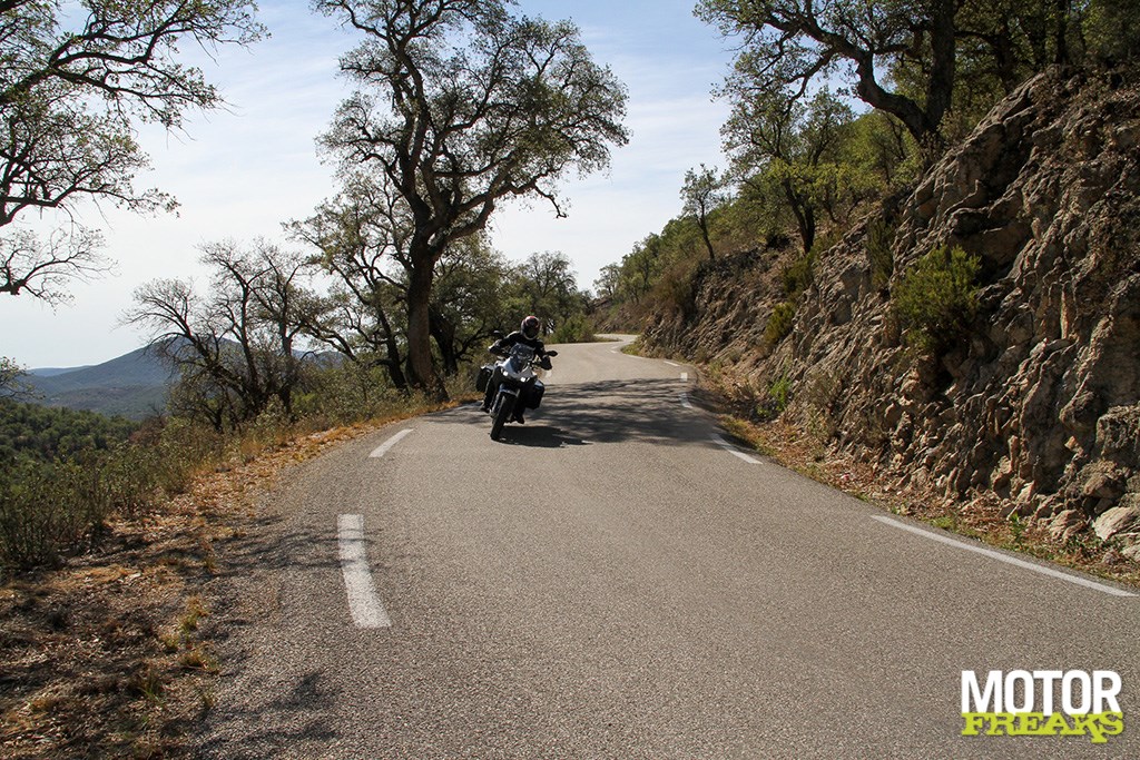 Dit soort weggetjes hebben we 't liefst, en de DSR/X is daar ook niet vies van, maar qua tempo schiet het natuurlijk voor geen meter op en da's best lastig als je meer dan 1.300 km te gaan hebt