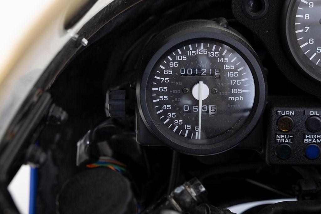 Wat dit RC30-exemplaar nog zeldzamer maakt, is dat het volledig origineel is gebleven; de banden zijn nog de originele fabriekstypes en het frame en motorblok zijn ongemodificeerd. Wel is de tank aan de binnenkant licht gecorrodeerd, deze zal moeten worden vervangen mocht je er mee willen gaan rijden.