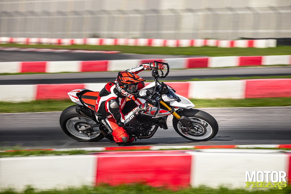Het nieuwe 890 cc V-twin motorblok is volgens Ducati de lichtste tweecilinder die ze ooit gebouwd hebben: slechts 54,4 kilo, ruim zes kilo lichter dan het oude Testastretta 11°-blok. Dankzij het IVT-systeem met variabele inlaatnokken levert het blok 120 pk, ruim genoeg om de Hypermotard in het hypermotard-segment aan de absolute top te zetten.