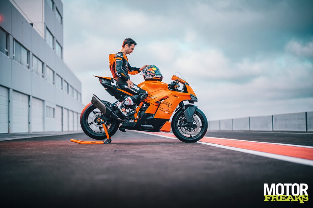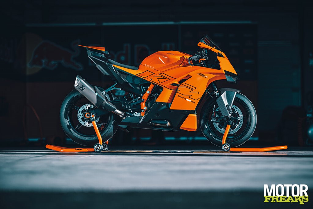 Het uiterlijk verraadt meteen waar de roots liggen: aerodynamische winglets, agressieve lijnen en compacte proporties. KTM claimt dat de kuip volledig in de windtunnel is ontwikkeld, met directe invloed van het Red Bull KTM Factory Racing MotoGP-programma. Onderhuids zit een nieuw stalen vakwerkframe met een diecast aluminium subframe – een constructie die niet alleen zorgt voor stijfheid en precisie in snelle bochten, maar ook voor een voorspelbare feedback onder acceleratie.