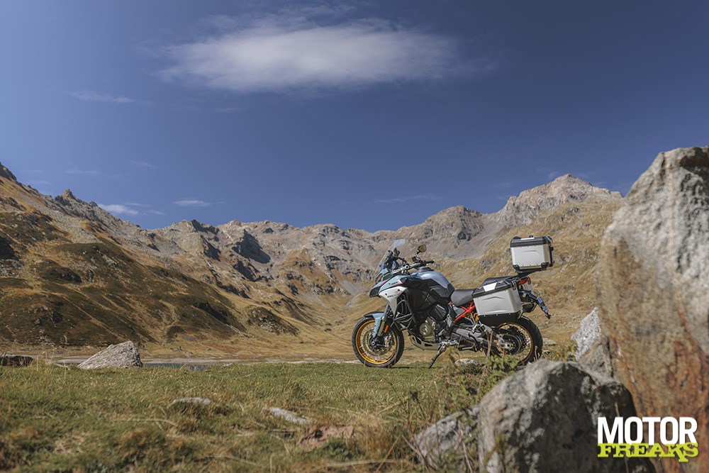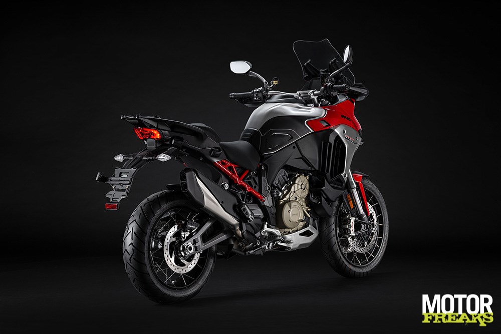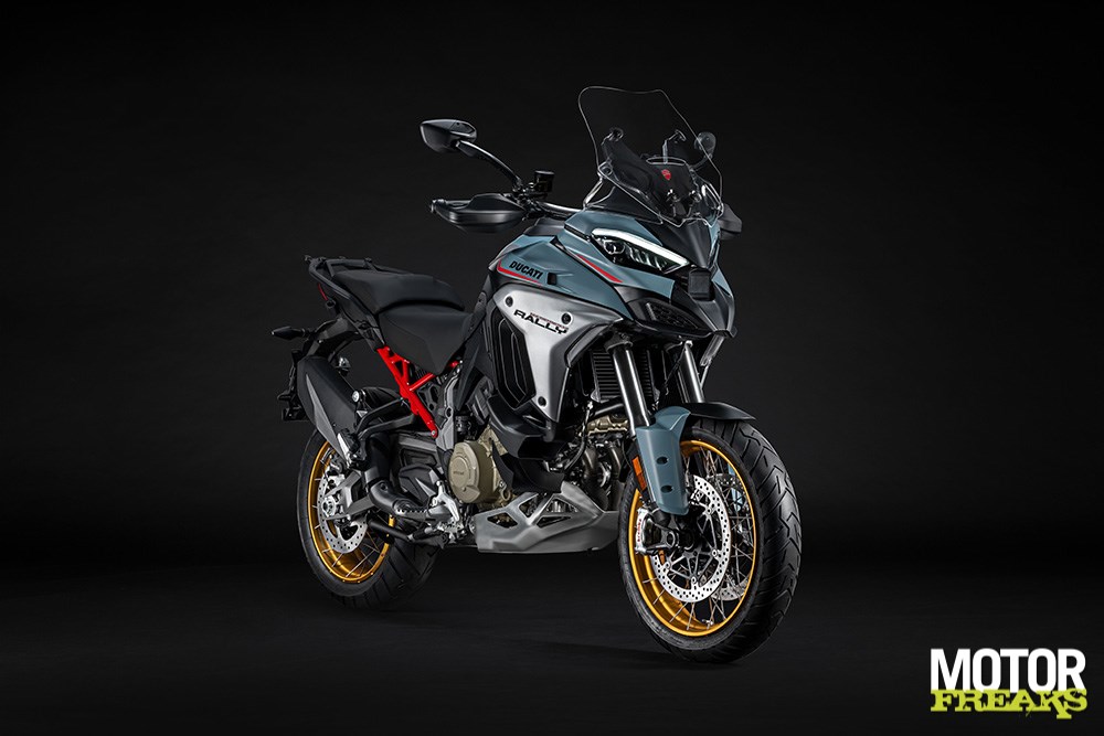 Onderhuids is de Multistrada V4 Rally hetzelfde gebleven. De 1.158 cc V4 Granturismo is nog steeds goed voor een topvermogen van 170 pk bij 10.750 tpm en een maximumkoppel van 121 Nm bij 8.750 tpm, met een lineaire koppelcurve voor soepele, progressieve respons. Dankzij de tegengesteld roterende krukas, door Ducati voor het eerst toegepast op de Desmosedici MotoGP-machine, voelt de motor licht en wendbaar, ondanks zijn grote cilinderinhoud.