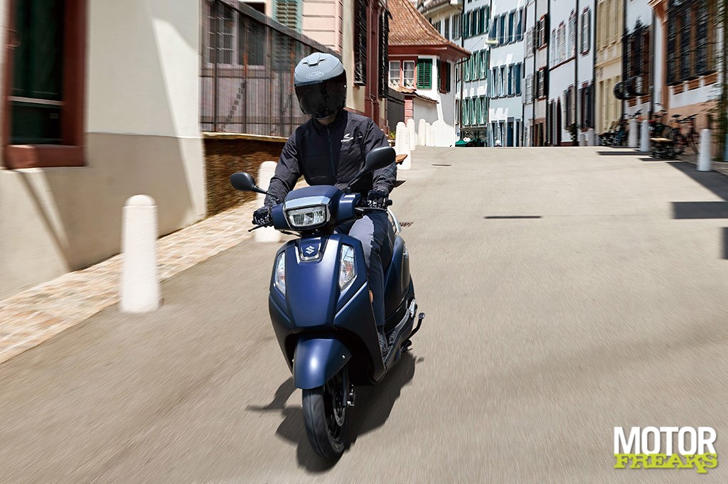 De 125 cc viertaktmotor is verder verfijnd en voldoet nu aan de Euro 5+-norm. Suzuki claimt dat dankzij aangepaste CVT-afstellingen de scooter bij lage snelheid levendiger reageert en meer trekkracht biedt in de toerenkelder en het middengebied – precies waar je dat in de stad nodig hebt. Het gemiddelde verbruik ligt op 1,9 liter per 100 km, volgens Suzuki.