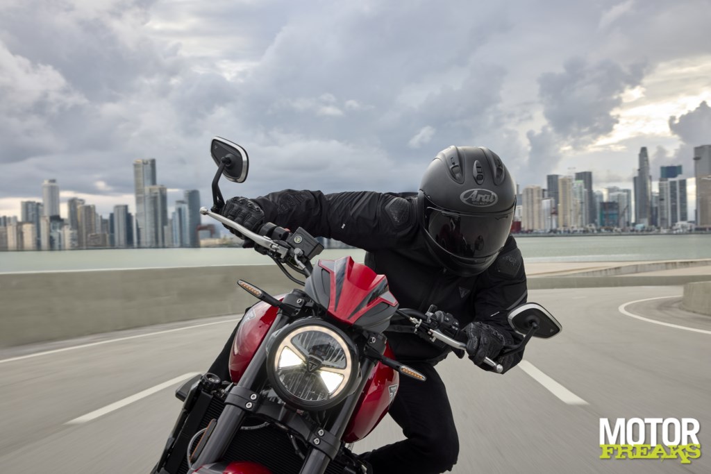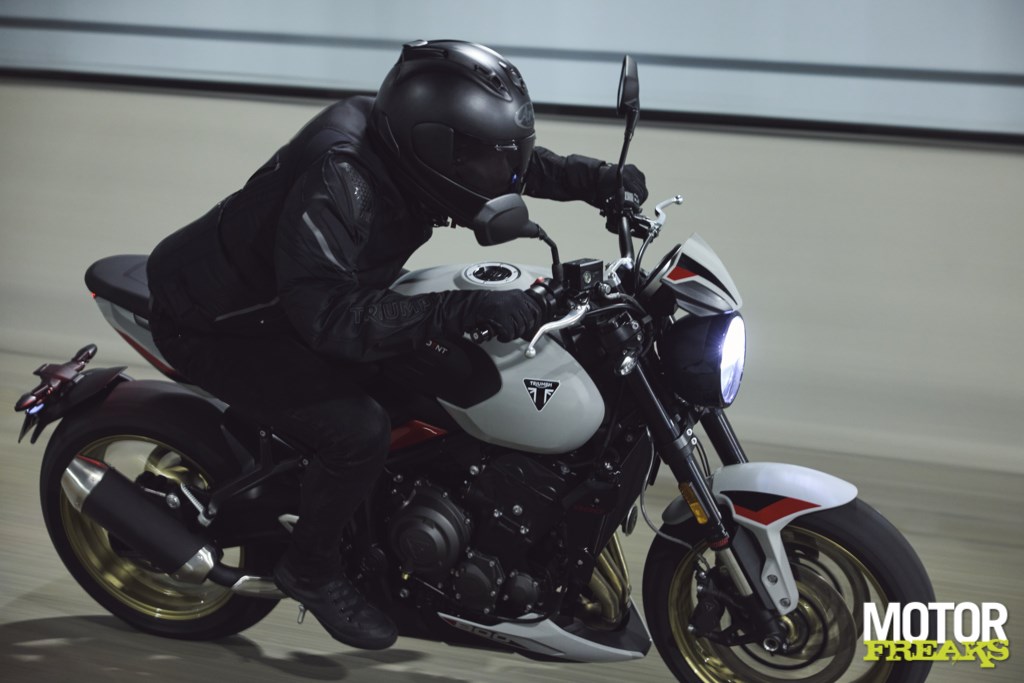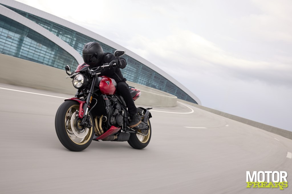 Daarnaast is er hellingshoekafhankelijk Optimised Cornering ABS en Optimised Cornering Traction Control, technologie die meestal is voorbehouden aan duurdere machines. Het geheel wordt aangestuurd via een 3,5-inch rond TFT-dashboard, gekoppeld aan het My Triumph Bluetooth-systeem voor muziek, telefoongesprekken en turn-by-turn navigatie.