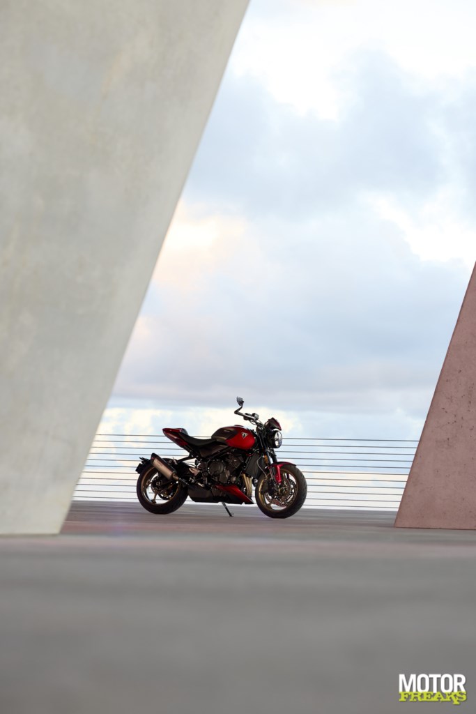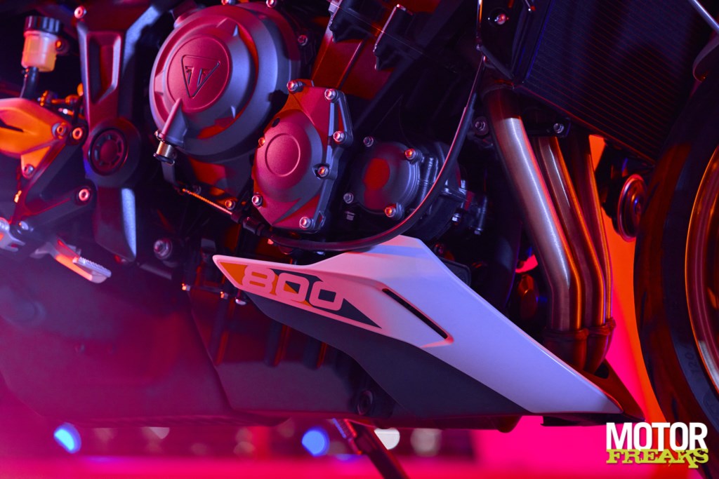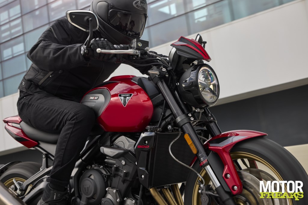 Met 115 pk bij 10.750 tpm en 84 Nm bij 8.500 tpm schuurt de Trident 800 tegen de top van het middensegment aan, maar dan wel met de typisch soepele en sonore driecilinderkarakteristiek. Intern werd niets aan het toeval overgelaten: een rotatie gesmede krukas, unieke nokkenas en balansas, gesmede drijfstangen en hoge compressie zuigers moeten zorgen voor duurzaamheid én een rauw randje in de beleving.