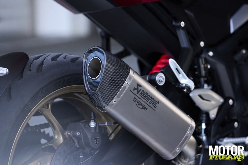 Wie nog meer pit wil, kan de optionele Akrapovič-demper monteren, met titanium behuizing en carbon eindkap.