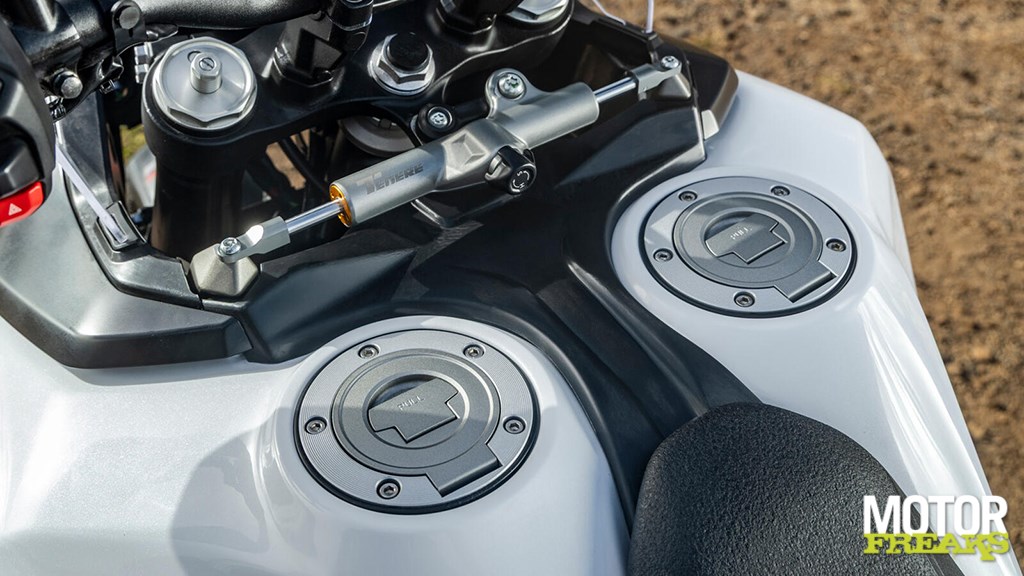De World Raid 2026 is voorzien van dubbele aluminium brandstoftanks van in totaal 23 liter, goed voor ongeveer 500 km actieradius. Twee aparte tanks minimaliseren het brandstofschommel-effect en verbeteren stabiliteit en rijgevoel.