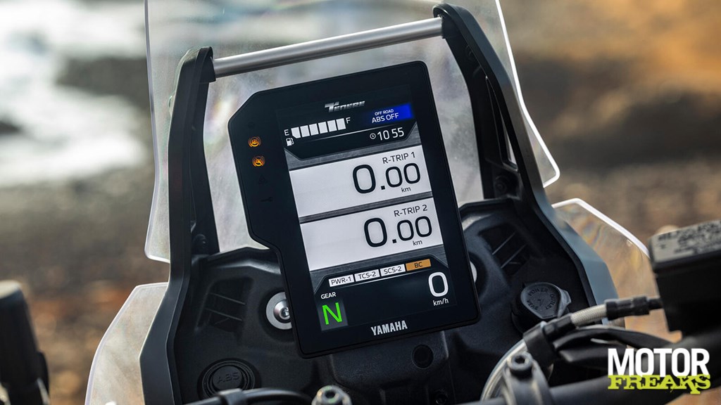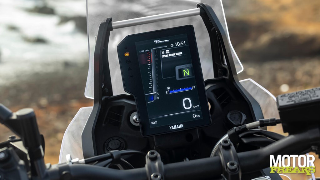 Het nieuwe 6,3” TFT-display biedt drie thema’s: Street, Explorer en Raid, voor optimaal inzicht in snelheid, toerental, brandstofverbruik, dagteller en navigatie. De motorfiets kan via de gratis Yamaha MyRide-app verbinding maken met telefoons voor oproepen, berichten, muziek en turn-by-turn navigatie.