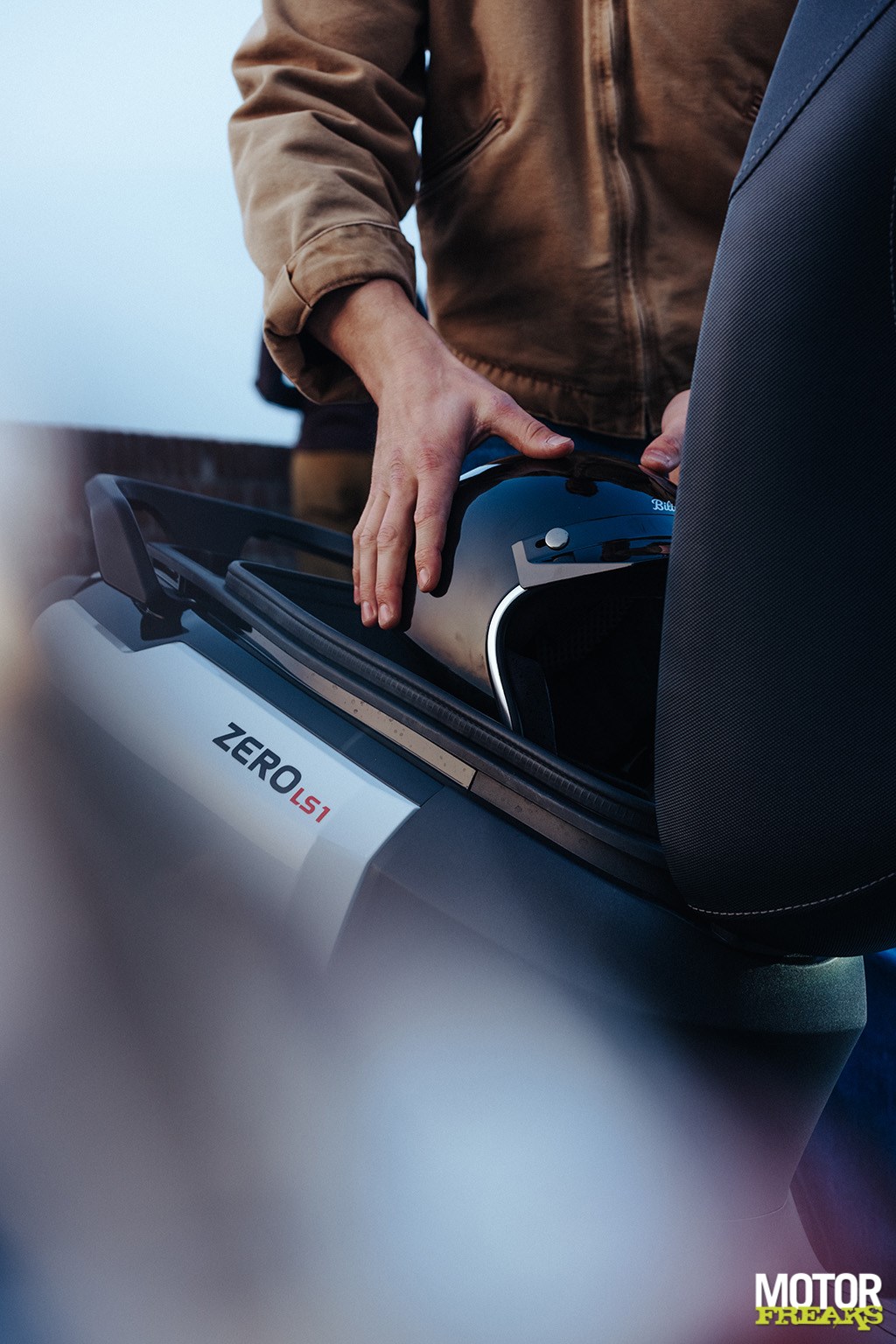 Standaard beschikt de LS1 over ABS en tractiecontrole, iets waar veel stadscooters het nog zonder moeten doen. Ook de ergonomie is gericht op vertrouwen in nauwe straatjes en filevorming. Onder het zadel is ruimte voor twee helmen, of een optionele derde batterij die het bereik vergroot tot een indrukwekkende 173 km — volgens Zero het grootste bereik in dit segment.