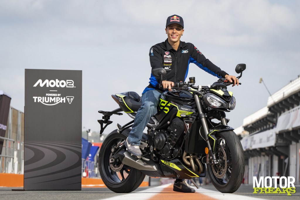 Moreira ontving zijn unieke, speciaal geliverde Street Triple 765 RS tijdens de seizoensfinale in Valencia. Hij reageerde zichtbaar trots: