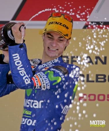 Dani Pedrosa is op weg om Valentino Rossi in te halen...v.w.b. records als teenager. Op Le mans kwam hij dankzij winst op gelijke hoogte met Rossi. Op Mugello liet hij zien waarom hij zich de succesvolste racende teenager mag noemen. Op een circuit waar de laatste 8 jaar een Aprillia had gewonnen presteerde hij het om eindelijk Honda weer een de overwinning te schenken., zijn eerste op Mugello. Vanaf een zevende startplek stoof hij naar de leiding die hij weliswaar na één ronde alweer moest afstaan, maar dat deerde hem niet. Het meeste "kopwerk" werd verricht door Casey Stoner maar jammer genoeg wist die geen podiumplek te behalen, hij werd teleurgesteld vierde. De hoop van de italianen was echter gevestigd op Andrea Dovizioso, maar die verloor al snel het contact met de kop door - naar later bleek, een onwillige voorkant - hij werd slechts achtste. De Franse hoop in bange dagen, Randy de Puniet, wist het ook niet waar te maken, hij gooide een vrijwel zekere vierde plek te grabbel. Ook teammgenoot Sebastian Porto, die hier vorig jaar won, overtuigde niet met een vijfde plek. Wie wel, verrassend, wist te overtuigen was Jorge Lorenzo. De 18-jarige Spanjaard reed in de training naar zijn eerste pole position in de 250cc. Z"n start was niet goed, maar hij reed vervolgens wel naar de kop toe! In de laatste ronde wist hij de tweede plaats van de Angelis af te snoepen en greep zo een mooie podium plaats.