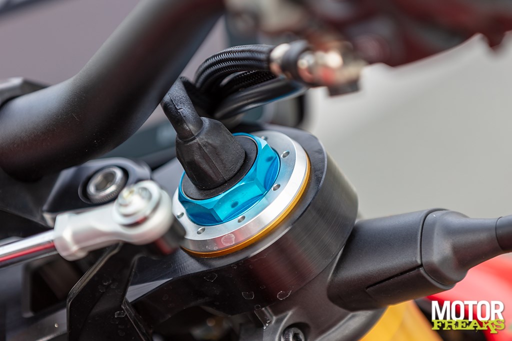 De Öhlins Smart EC 3.0-vering is een wonder op zich. De hydraulische kleppen zijn nu van het zogeheten spool-type, sneller reagerend en met een breder afstelbereik. Het systeem leest niet alleen acceleratie en remkracht, maar ook je tempo: dankzij de *Cruise Detection*-strategie wordt de vering zachter bij constante snelheid, ideaal voor snelwegtrajecten.